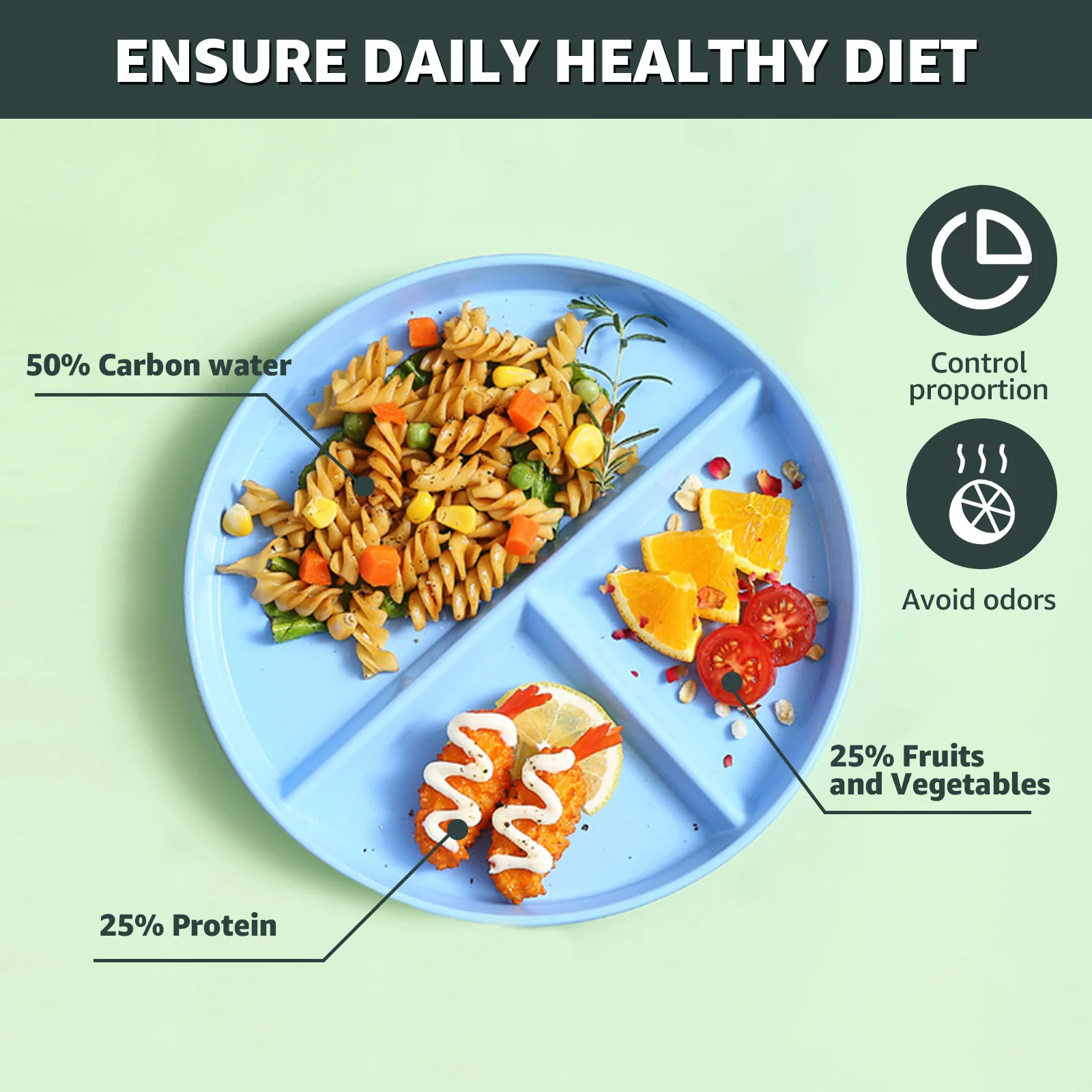 8Pcs 9inch Divided Dinner Plates Unbreakable Portion Control Dinner Diet Plates Lightweight Salad Plates Set Stackable Food Tray
