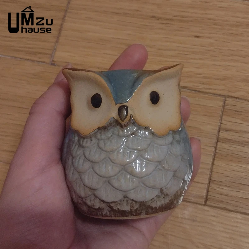 2PCS Mini Owl Flower Pot Cute Bird Ceramic Flowerpot Home Garden Office Decor Balcony Vase Desk Succulent Cactus Plants Planters