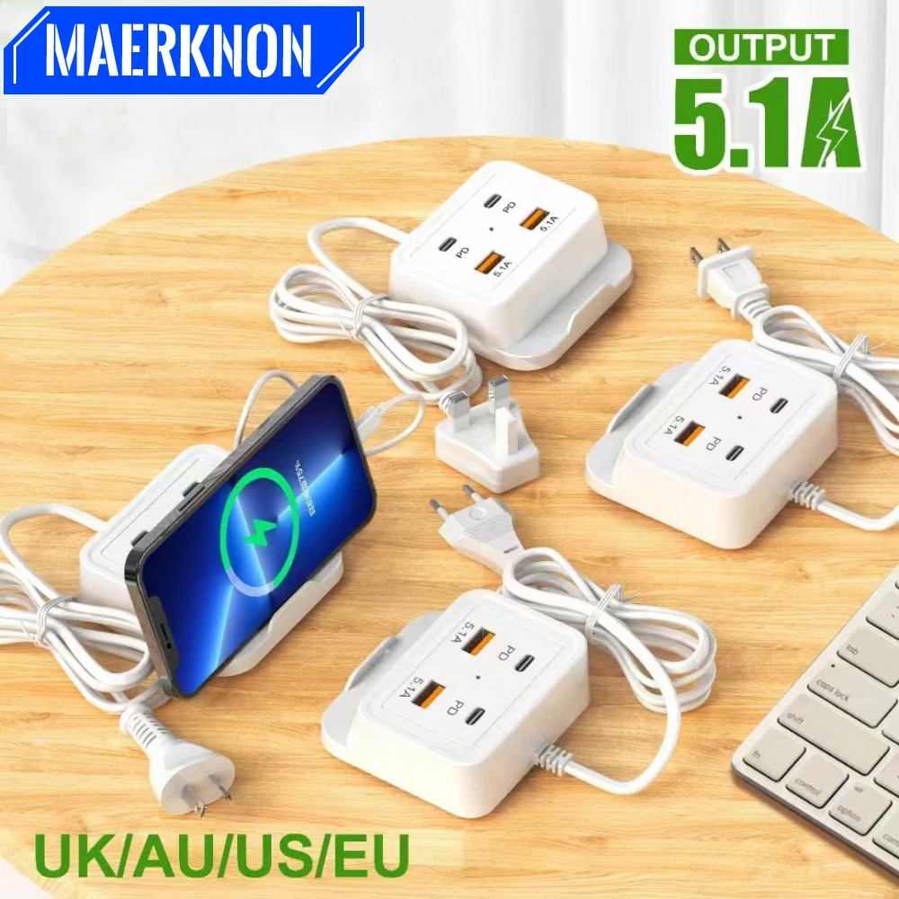 Universal 5.1A 4 Ports with Stand Fast Charging 2pd 2usb EU US UK Plug Wall Quick Mobile Phone Charger For IPhone 15 Xiaomi